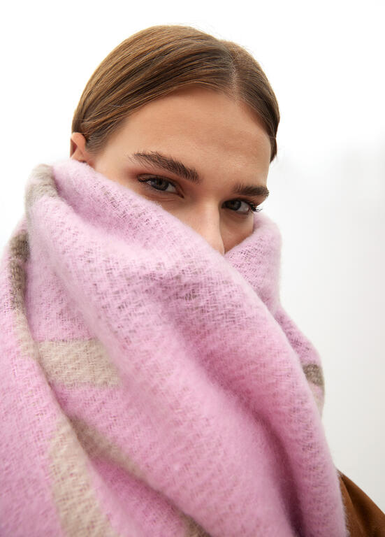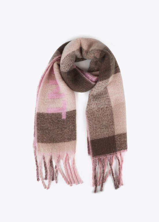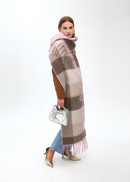 Bufanda Lola Casademunt cuadros logo grande Rosa-Marrón