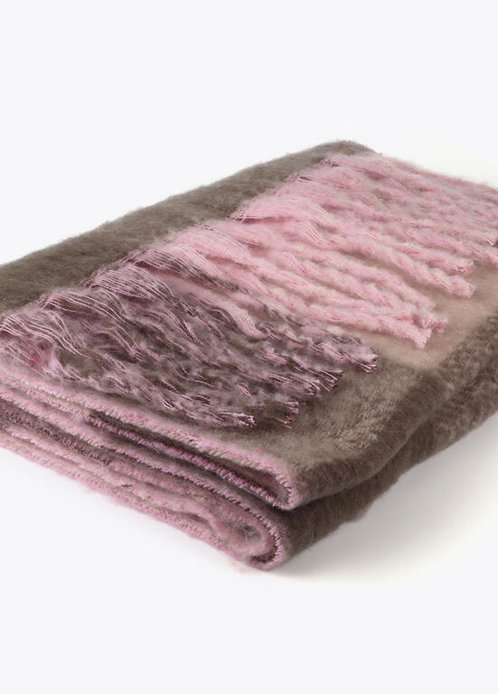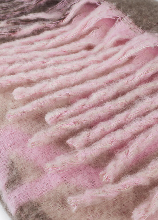 La bufanda Lola Casademunt en rosa y marrón destaca por su diseño de cuadros y un logo grande que imprime carácter. Elaborada con un tejido delicado y cálido, esta pieza aporta un toque de sofisticación suave y versátil, perfecta para complementar con estilo cualquier look de temporada.