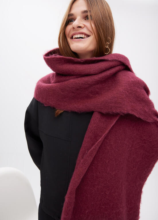 Bufanda Lola Casademunt en un profundo tono burdeos que destila elegancia y calidez. Confeccionada con un tejido delicadamente suave, envuelve con una sensación de confort incomparable durante los días más gélidos. Su estructura lisa se realza con flecos decorativos en los extremos, añadiendo un detalle de distinción. El color burdeos, sofisticado y versátil, complementa cualquier atuendo con una nota de refinamiento. Una bufanda que combina lujo táctil con estilo atemporal.