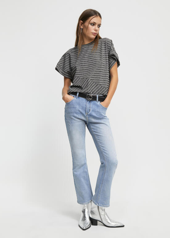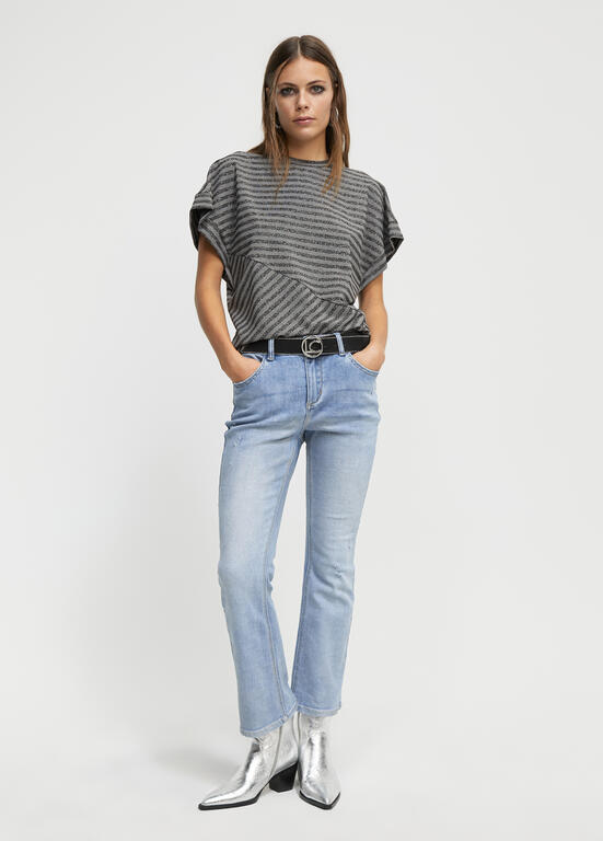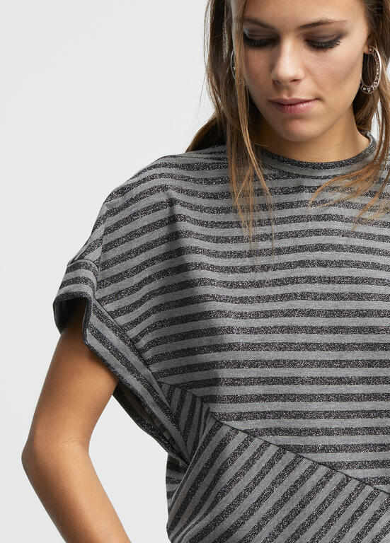 Camiseta de la marca Lola Casademunt en manga de sisa de color gris con rayas negras