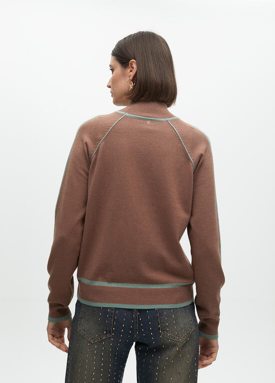 Jersey Lola Casademunt cuello alto detalle ribetes Marrón-Azul
