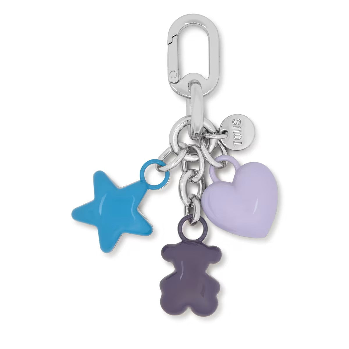 Este llavero Tous en morado y plateado aporta un toque alegre y encantador a tus accesorios. Perfecto para quienes buscan un detalle divertido y con estilo que destaque.