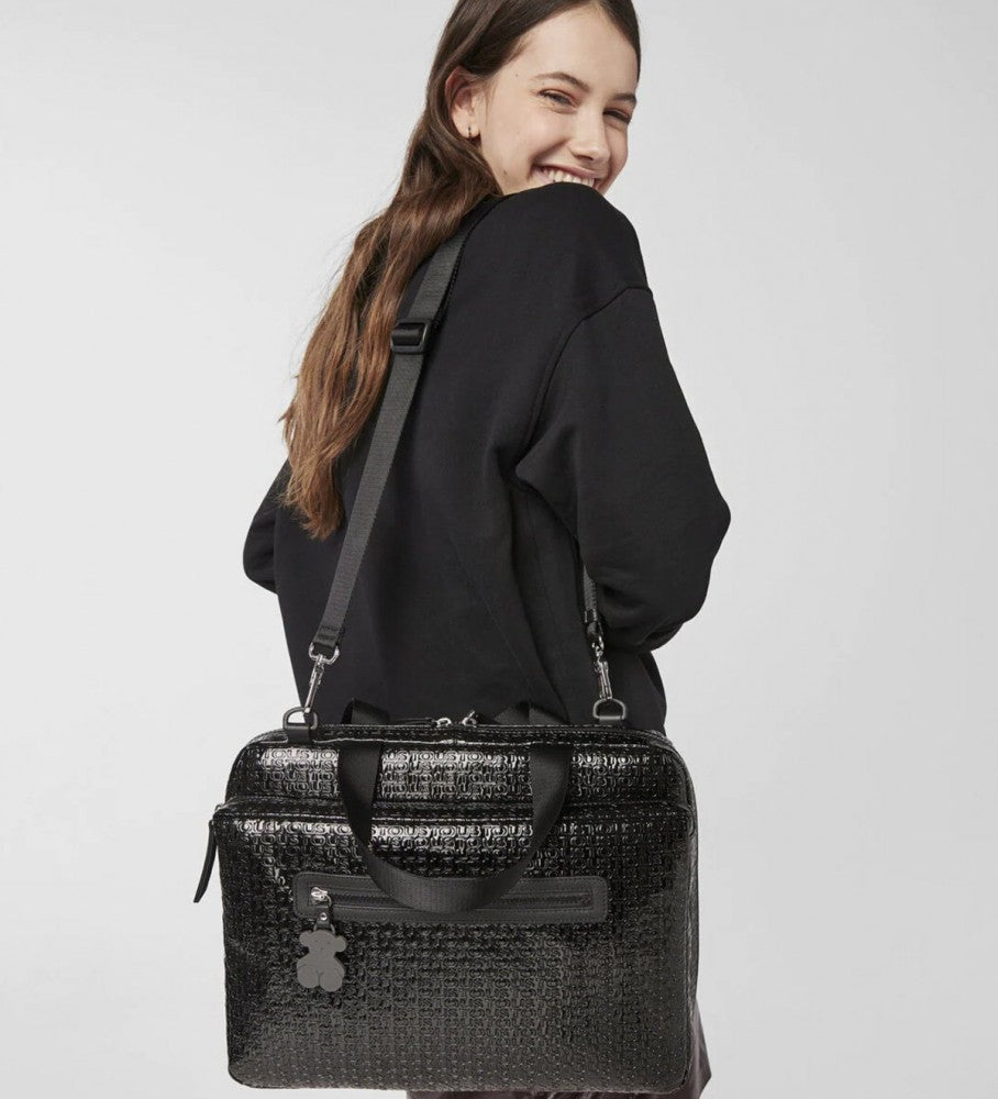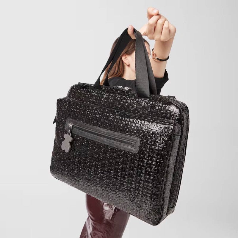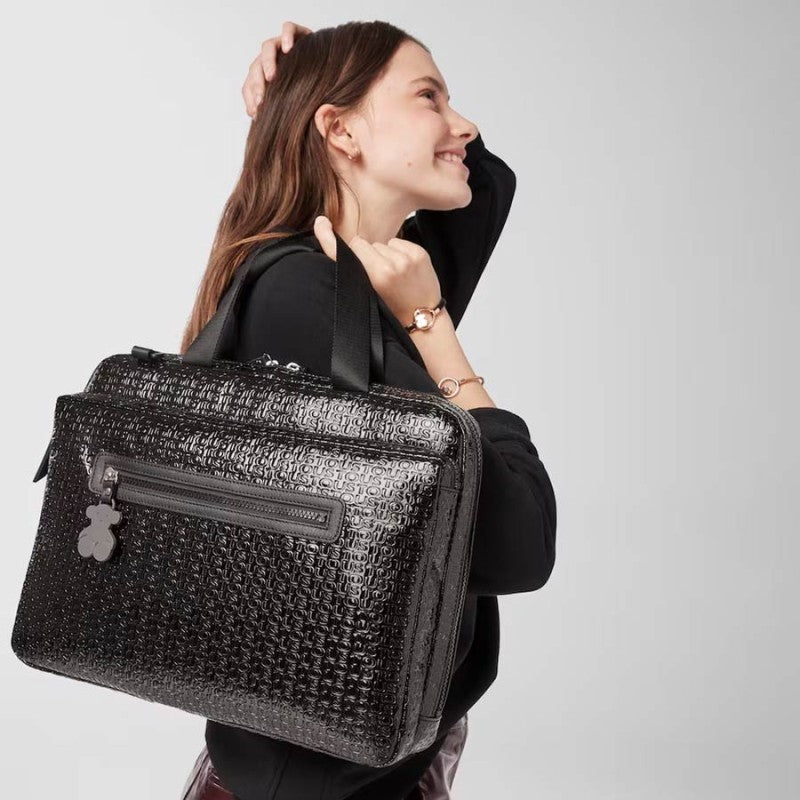 Maletín Tous Lindsay en charol negro que combina elegancia y funcionalidad. Su acabado brillante y diseño refinado lo convierten en el complemento perfecto para cualquier ocasión, desde la oficina hasta eventos especiales. Confeccionado con materiales de calidad, ofrece durabilidad y un aspecto impecable. Espacioso en su interior para guardar tus pertenencias esenciales con estilo y seguridad.