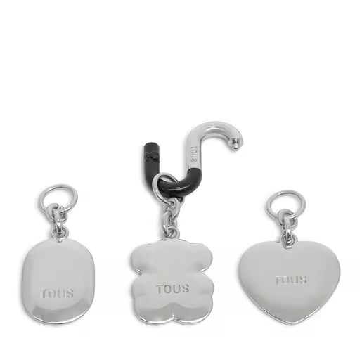 Este pack de llaveros colgantes en acabado plateado está diseñado para complementar tus llaves o bolsos con un toque elegante y sofisticado. Su diseño distinguido aporta una apariencia refinada, mientras que su estructura resistente asegura un uso duradero. Perfectos para quienes buscan combinar estilo y funcionalidad en un accesorio esencial del día a día.