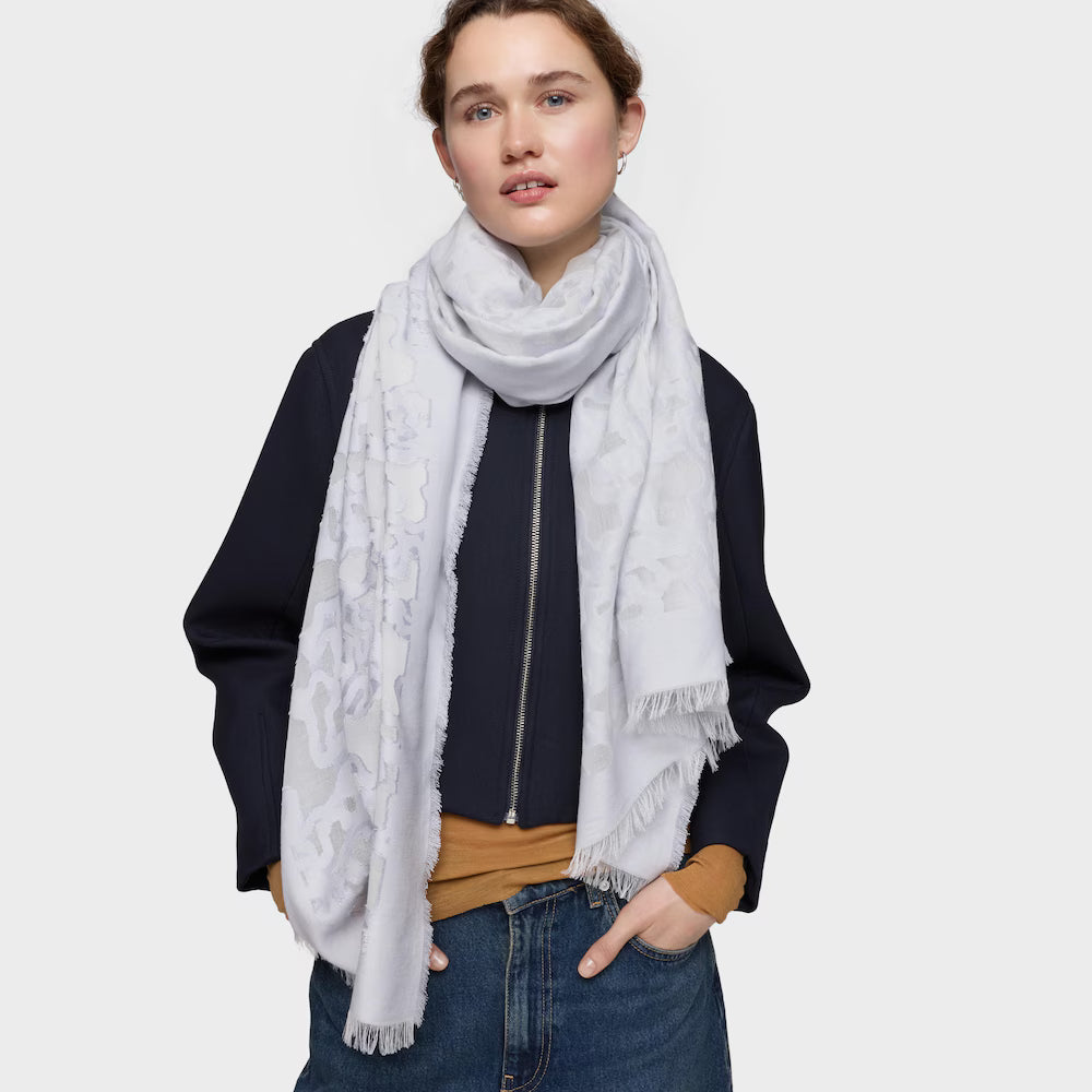 Este pañuelo Tous de 200x100 cm combina diseño contemporáneo con artesanía refinada. La técnica devoré crea un patrón geométrico sutil en tonos azul grisáceo, otorgando profundidad y movimiento a la prenda. Versátil y elegante, se adapta a múltiples formas de uso: drapeado al cuello, anudado a la cintura o sobre los hombros. Su composición delicada y su coloración sofisticada lo convierten en el complemento ideal para elevar cualquier look con discreción y clase.